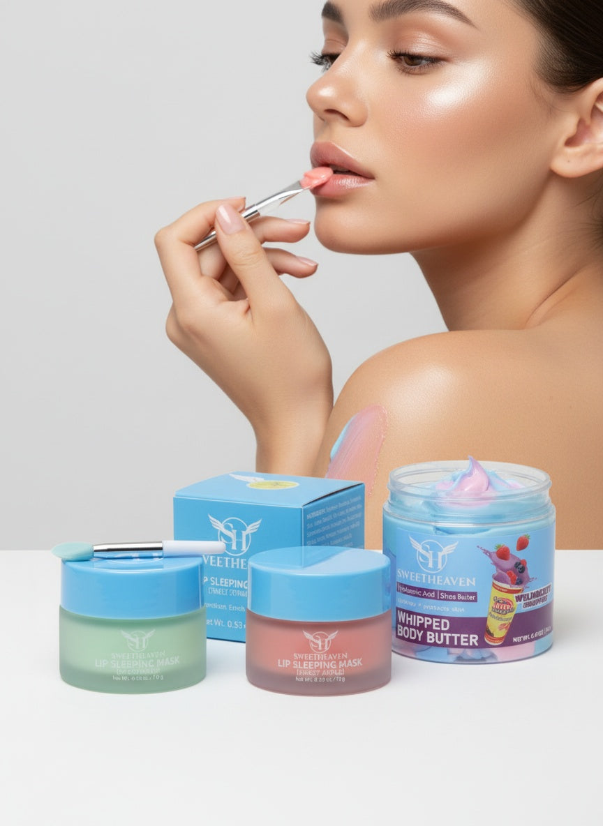 At Sweetheaven, skincare is more than a routine, it’s a daily ritual of softness, self-love, and sensory escape. Our flavor-kissed body butters and lip masks are crafted to turn every touch into a moment of indulgence, leaving your skin glowing and your spirit lifted.